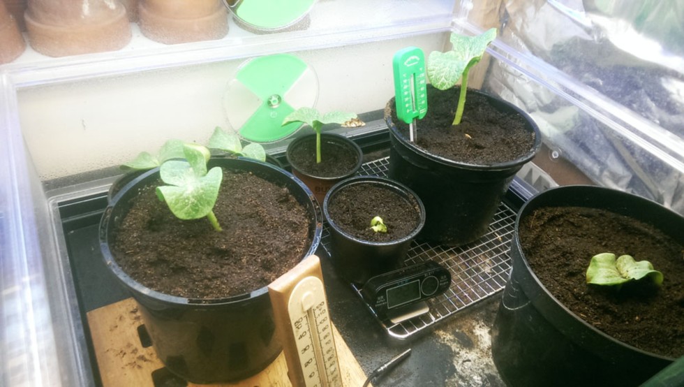 We are a couple of weeks behind everyone else but in the scheme of things it doesn't matter. Here are the seedlings under the grow lights. Soil temp 20C and air temp 22C.