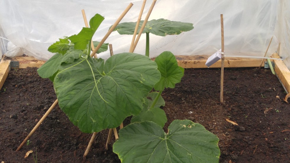 2145 McMullen decided it wants to make a turn instead of going straight. Luckily we have warm days and the hoop hits 90 degrees. So adjusting has been although slow, a steady process. Anyone who faces this, don't rush it. She will come down it's simple gravity, use the bamboo stakes at the angle you need. The plants weight will do the work for you.