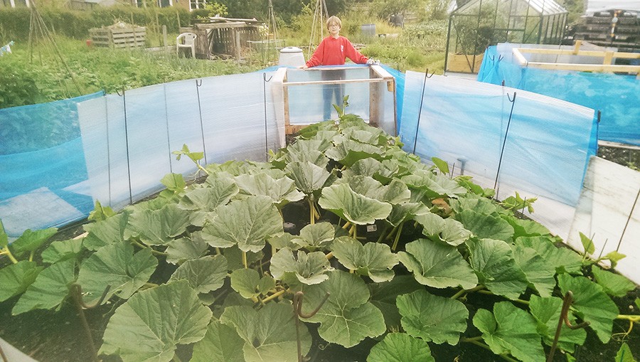 This is the 333 and after a couple of days of rain, which will have washed the soil somewhat, now is a good time to get started on feed for the flowering phase. I'll reduce the N and start to raise the P and K. We also have a mole that's making an appearance here and there, probably the same one as last year, I hope it doesn't want to make the pumpkin patch its permanent home!
