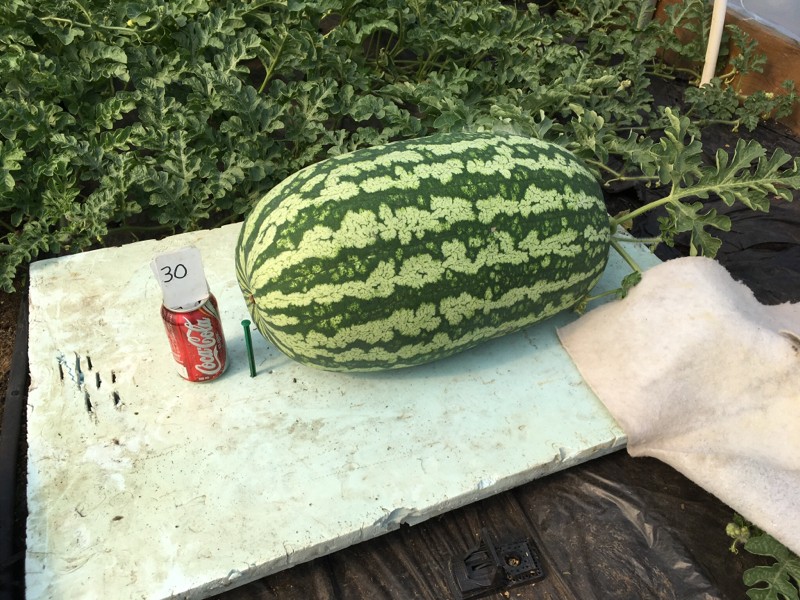 100 Crews watermelon 53" cir I think I pollinated this on June 11. Was expecting awesomeness then the plant started to struggle. Just doing ok.