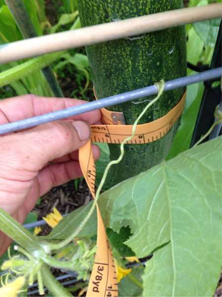 Not too sure what the measurements of a heavy cuke should be, but she's pushing out for 13 days old. 22" long.