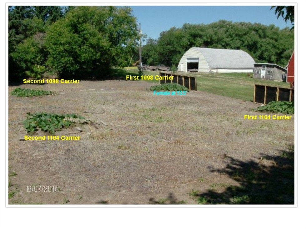 I culled the female that was pollinated at 6' on First 1098 Carrier and culled the females at 8' and 9' for same. There is a female at 13.5'