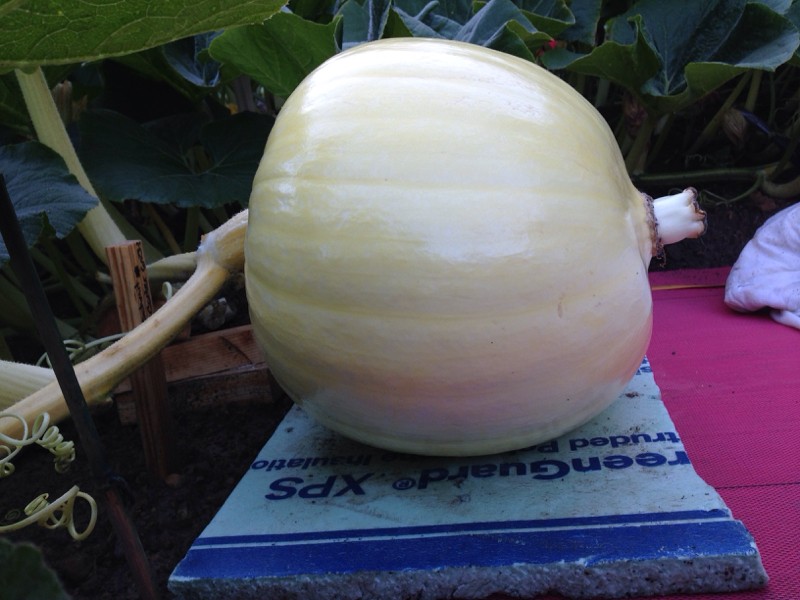 A final example of the "Vine Line" I was talking about with the 2106. Level from stem to blossom. If you plan on growing large ones, this becomes more difficult as you need to prop the main vine up as the pumpkin grows, as well as slide it away from the main vine periodically in order to maintain level throughout the season.