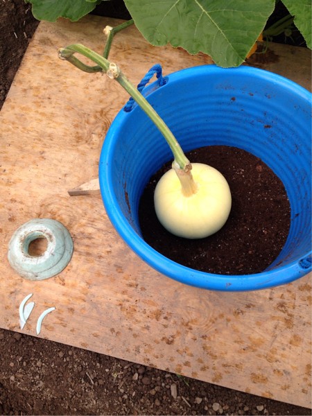 Glen, what a great idea! Your bucket idea gave me the perfect babysitter whilst I make some modifications to the Pumpcone. Filled a big ol' tub with loose coco fiber and she tucked in comfortably. Additionally, this may be how I get a larger pumpkin next year before needing the cone. Dry coco, and keep it dry, and the blossom can push out into the coco for a bit. Great to know the discussion is already working.