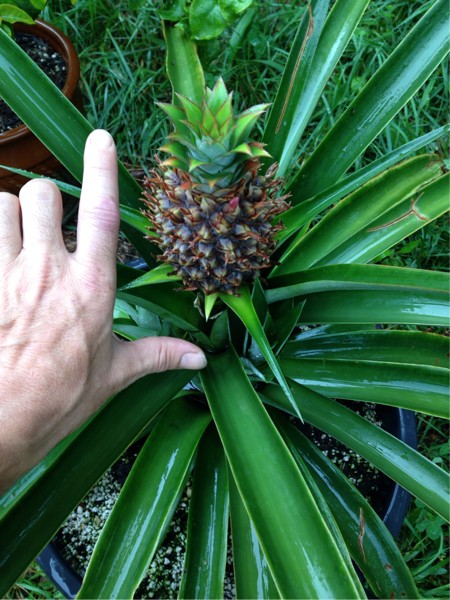 Last round of flowers pollinated and swelling on the pineapple. This was one of the hummingbirds' favorites this year.