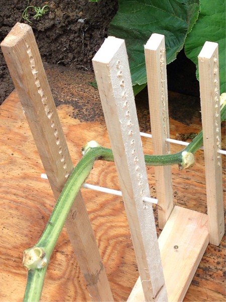 And a better view of the supports. Needed something with the same diameter for the rods (bamboo would have the knuckles on it) but not a bolt or allthread or anything that would scratch, so I used the fiberglass rod from an old driveway reflector that got run over for the cross bars. So far I'm happy with how they worked and the fact that I won't have to figure it out again tomorrow. Keeee YAAAH with the G I Joe kung fu grip baby!