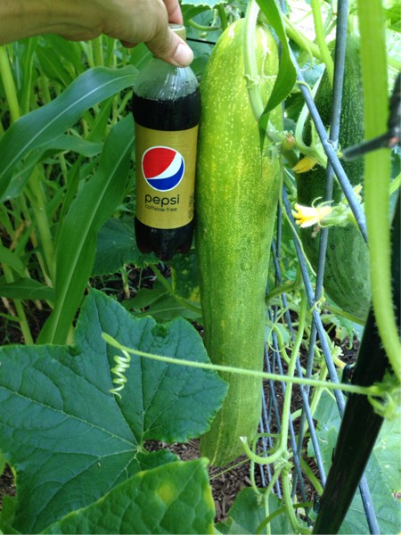 Half liter bottle (15.9 oz) Hard to get a comparison on theee but I figured the bottle was little bigger than average slicing cucumber.