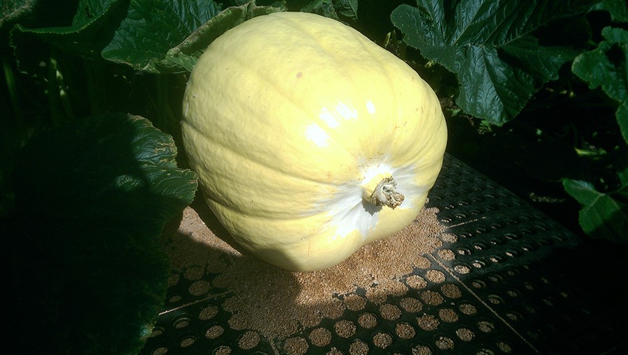 OK so we're back after a rainy week away in Wales and the first thing noticed on the patch was that the 333 hadn't gained in size at all and there were some tell-tale white patches around the blossom end. After little or no growth for over a week it's pretty obvious that this one's destined only for the compost heap, so Oliver hacked it off and away it went. I can't say I was that surprised because it was an awkward shape from the very beginning, including the flower that it came from. I'm not disappointed either because the other 333 pumpkin on the sidevine is doing so much better.