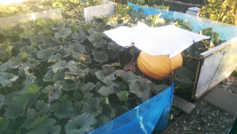 After a cold wet and windy week, with hail today, our transplant pumpkin has continued to grow slowly, the taped weight has now gone up to just over 200kg (about 440lb). Despite easily breaking our PB, I'm really looking forward to a polytunnel for next years effort. That and better seeds will make all the difference.