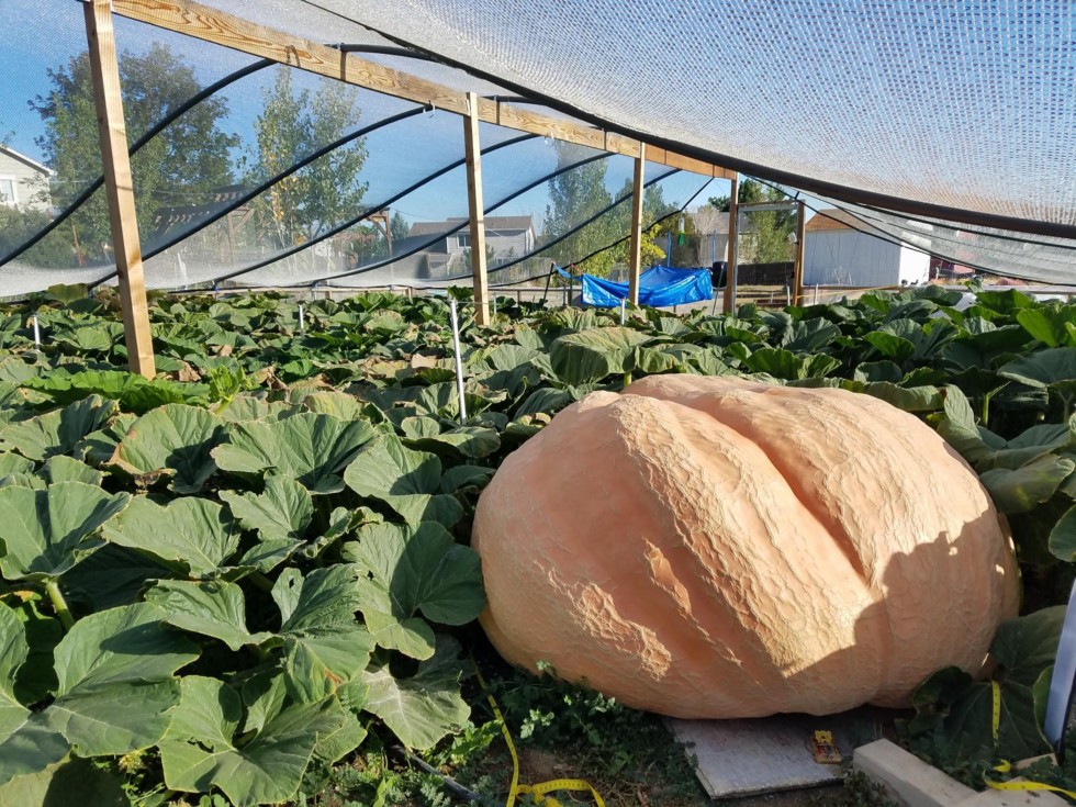 Joffrey the 1985 Miller X 1367 New � Day 60. Plant is still doing great, starting to show a little age of the secondary vines, the PM is around the old part of the plant. Not TOOO bad though. The skin is continuing to get a really gnarly look. He looks heavy and is thumping hard so hopefully it will go heavy too� Thus far I don�t see a massive benefit with the larger plant, I may stick to my 400Sf plants as this 800 footer is not THAT far in front of the plant about half it�s size. Current Est is 1012lb. The last 10 days have had an avg of 8.4 pounds per day. I think this pumpkin will also go heavy.