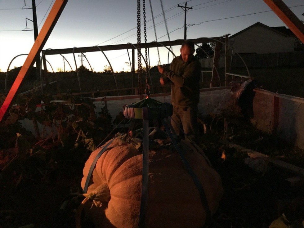 Early morning loading. Come to find out a whole mess of 1998 Miller seeds were grown in Denver this year. This pumpkin was 1022. Not what I wanted but not my worst. Will be trying harder next year!