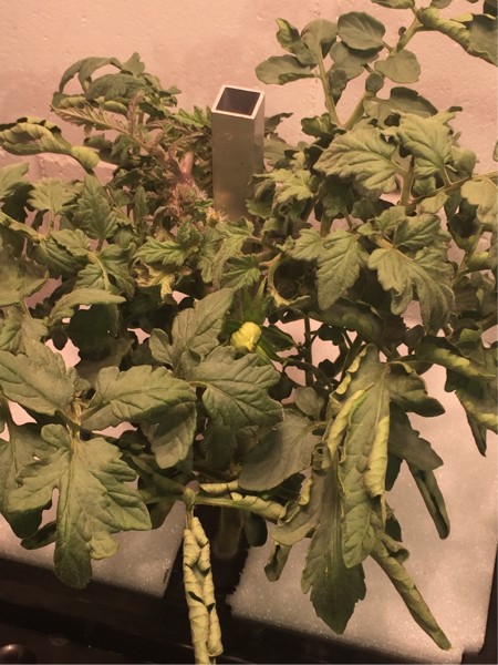 Aeroponic leaves. I think that earlier in the plant growth that I should have boosted N a bit more. I have many leaves but they are all small. Too late now..will be running a fruiting solution for the rest of the grow. I am satisfied with the current strength. Getting just a bit of leaf curl up on the lower leaves, new growth just barely deformed. This may not be the right level, but at least I am at the level I am aiming for. Maybe next year can do some side by side testing to find a more exact level.