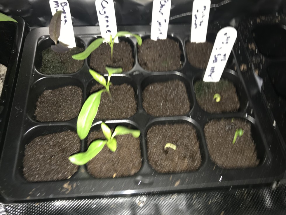 my world record bell peppers are having a hard time shedding their seed coats. I had to pull them off, damaged the front one. hopefully they make it.
