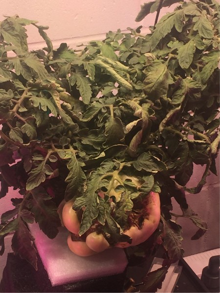 13 days to go ...I have two sets that are measuring 18 inches cc and are gaining 1/4 inch+ per day. Both had early BER which will reduce their weight to volume somewhat. I have placed lighting to deliver about 1000 uMols of light on 2/3rds of the canopy...300 watts over the top and 300 watts of side lighting. I should have taken a picture..could have shown you a leaf that is suffering from light toxicity. Instead I just cut the affected leaves for the benefit of the leaves in the middle. I have sent pictures of where I am at to Dan...3.06 pounds could be within reach. Can't let him think he has it wrapped up a month before the contest is over.