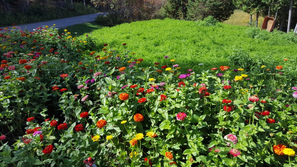 This was October 6th last year. Zinnias is full bloom and the hairy vetch vigorous.