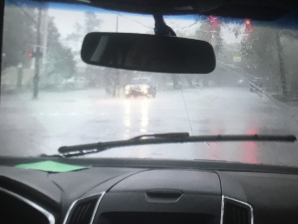 Pouring rain earlier and thunderstorms. Strong winds. No hail or tornadoes but there were some around.