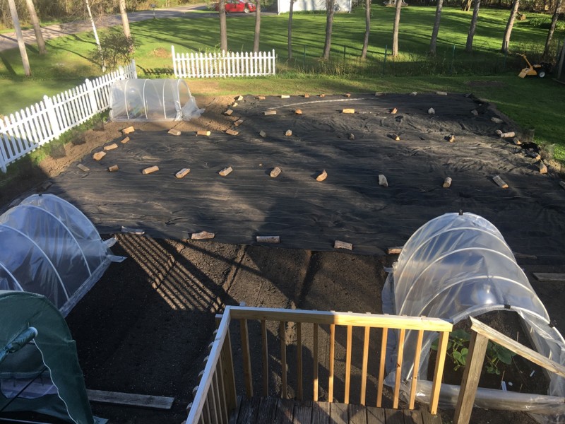 Happy Mother�s Day to all the moms out there! New patch is starting to progress as we got giant sunflowers planted in rabbit proof barriers and the weed guard down to help our sore backs.