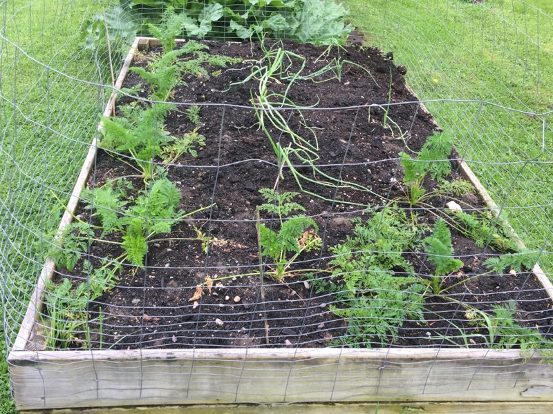 Had bunny pressure on our carrots so we put up a fence and also planted giant onions in same bed.