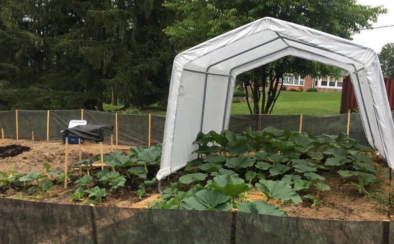 I have pulled half a dozen females that were in poor positioning (early secondaries). The pumpkin on the main vine was pollinated 6-7-18. I give it a 50/50 for taking. I just don't feel like it will. It is located under the shade structure. Another was pollinated this morning on a side vine 6-12-18. The plant started to show signs of to much Nitrogen so I have backed off all fertilizer for a week now. She is snapping back and growing like a weed. The smaller Holland plant has been used for both pollinations so far and will continue to stay in the patch until I get a 30-80#er set on the Clementz. I have also extended my growing plot and wind fence. My main is a little over 23' now.
