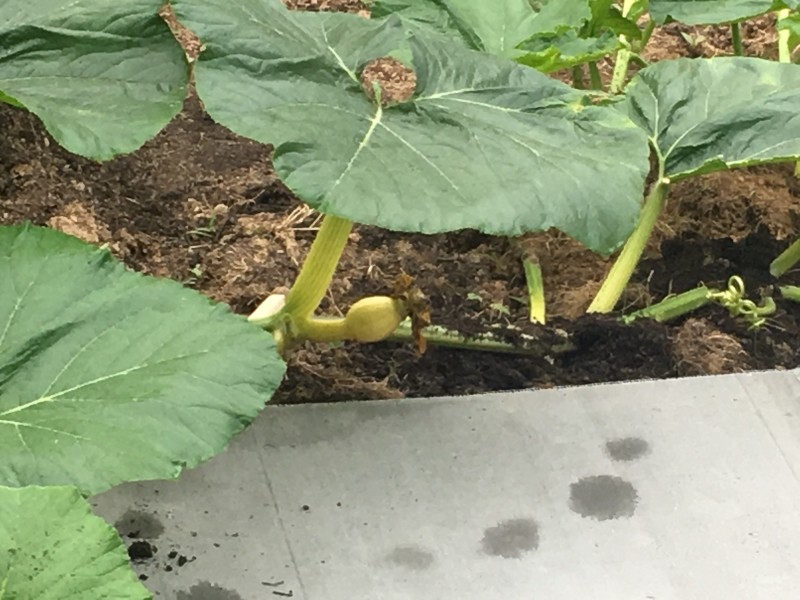 I removed my shade cloth from over the pumpkin. There is now plenty of natural shade coming from the leaf at that node. A sheet of cement board was placed over the soil for the pumpkin to set (if it takes). If not, I will shimmy it on down to the pumpkin at the 20'+ spot on the main. No ferts placed for over a week now. I did spray a light folliar fungicide and insecticide 6-12-18.