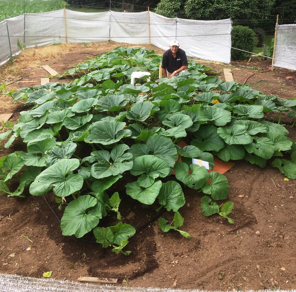Status- 1501 Wagner 12�L x 19�W and growing like crazy� 3 pollinations � 9 days ago at 9� x 2112Skinner on main stem � 9 preceding secondaries - 17� circ; 2 days ago with a borrowed 1457 Gansert on main stem at 13� with 14 preceding secondaries and today x self, 8� out the first secondary. Plant expanding almost a foot/day � only a few feet left to the limits of the fence. Looks great 2043 Big Bubbles � 12 L x 15 W; 2 weeks younger than the Wagner but with bigger leaves� biggest 19�. 2 female flowers just starting near tip of main stem and a nearby secondary. STILL � not a single male flower has matured and bloomed � a few candidates slowly growing. Maybe I buried them with the nodes. Will be more careful. Looks great. Have not applied much extra fertilizer beyond commercial dried bagged sterile mushroom soil, 10-10-10, gypsum, borax and epsum salt that I rotolled in in last fall and again this spring. Just 3 applications so far of fish and Kelp emulsion and Jacks 10-30-20 and the concoction applied with each buried node (see 6/15)