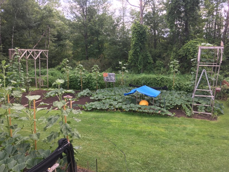 Old patch pumpkin is almost filled its 400 square foot space and the bushel gourds are starting to pick up the pace.