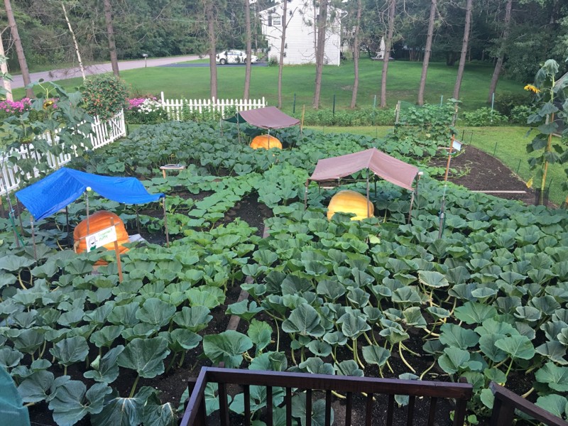 It was a fun busy weekend as we just had 40 of our good friends at our club patch tour. The patch has been poked and prodded a bit but overall we are still growing. My son Andrew and I moved 3 of the pumpkins forward as they were pushing back on their main vines.