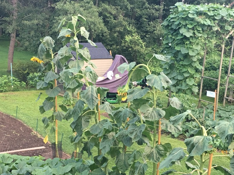Sunflowers did well this year with a couple over 14 feet tall. We will bring one of these to our local fair.