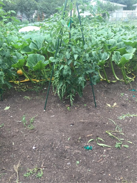 MegamuttD keeps getting more space to herself. This weekend depending on measurements will determine if a few secondaries disappear from the pumpkin plant. What is the trade off of 50 pounds less weight on a 1200 pound pumkin as compared to a potential 1 pound bigger tomato. Fungicide this evening, rain tomorrow, super compost tea brew started tomorrow night. I am finally getting excited about growing this season. Shutting 90% of the computer projects down has helped me rediscover the passion.