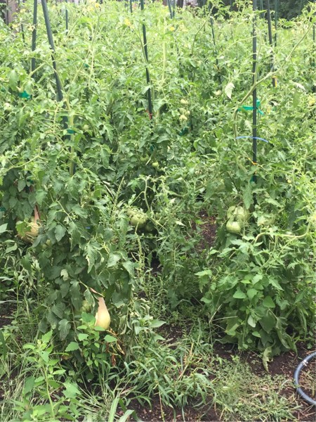Seed factory is doing what it is suppose to he doing...putting out lots of tomatoes. Been a bit negligent in weeding and tying up the plants but it is all good. Should be harvesting thousands of seeds.