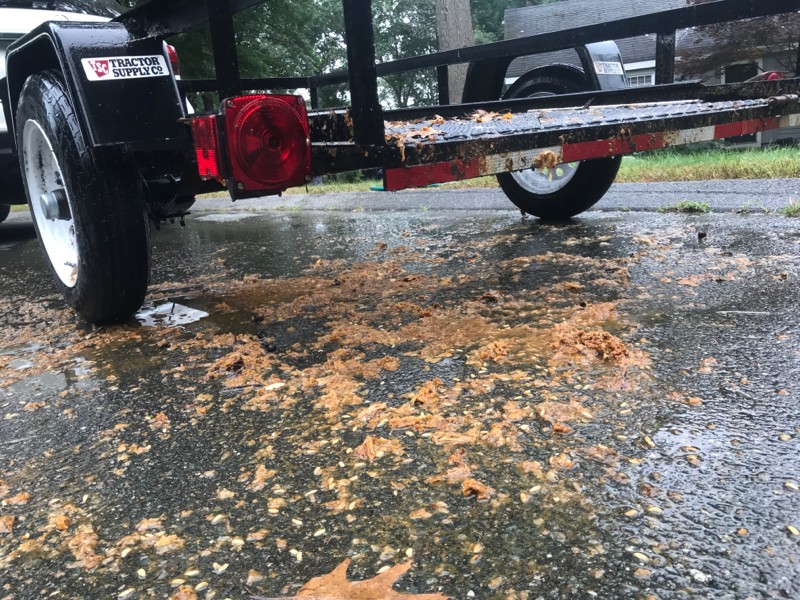 Headed to pick up something on the maggot trailer! Why the hell did I leave the pumpkin on the trailer to rot. Ugh!