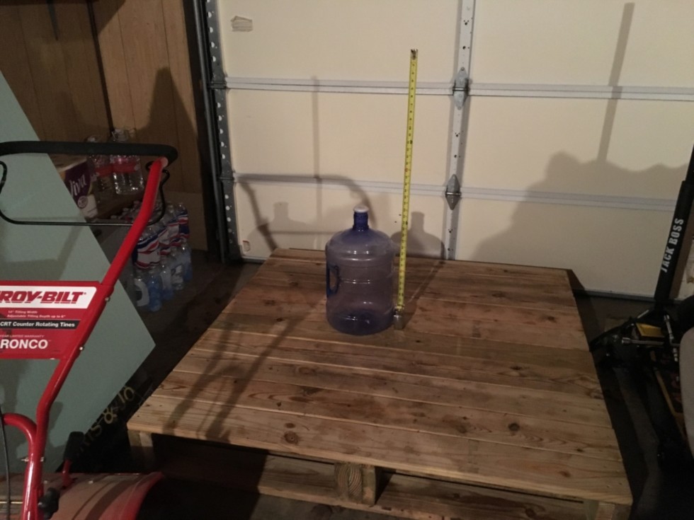 Pallet construction is now complete. It is built with treated 2x6 runners and standard decking. Dimensions are 57"x57". Loading and weigh off are fast approaching. I'll see if I can sneak in a couple heavy days of Jeeping to get my mind elsewhere. Water jug is for size reference and tape measure is to get an idea how tall a 40" kin would set before padding and foam get added.