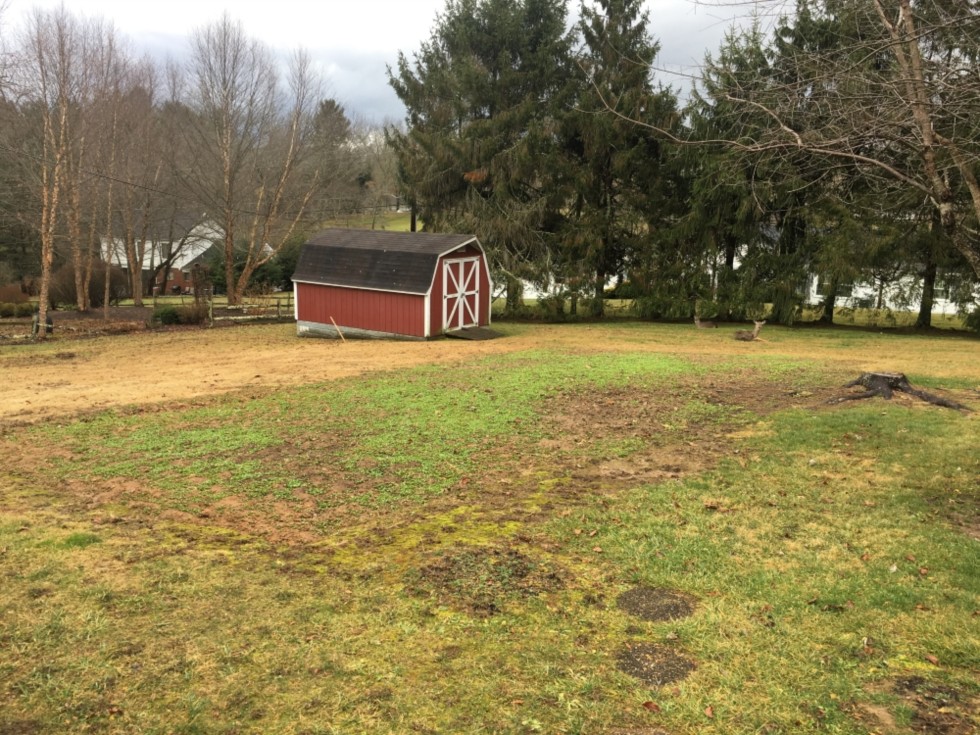 You can see in this picture the ground below the existing patch nuked with herbicide. The mustard cover on last years patch is pitiful but present. A couple does have also taken up bed to hold guard on everything.