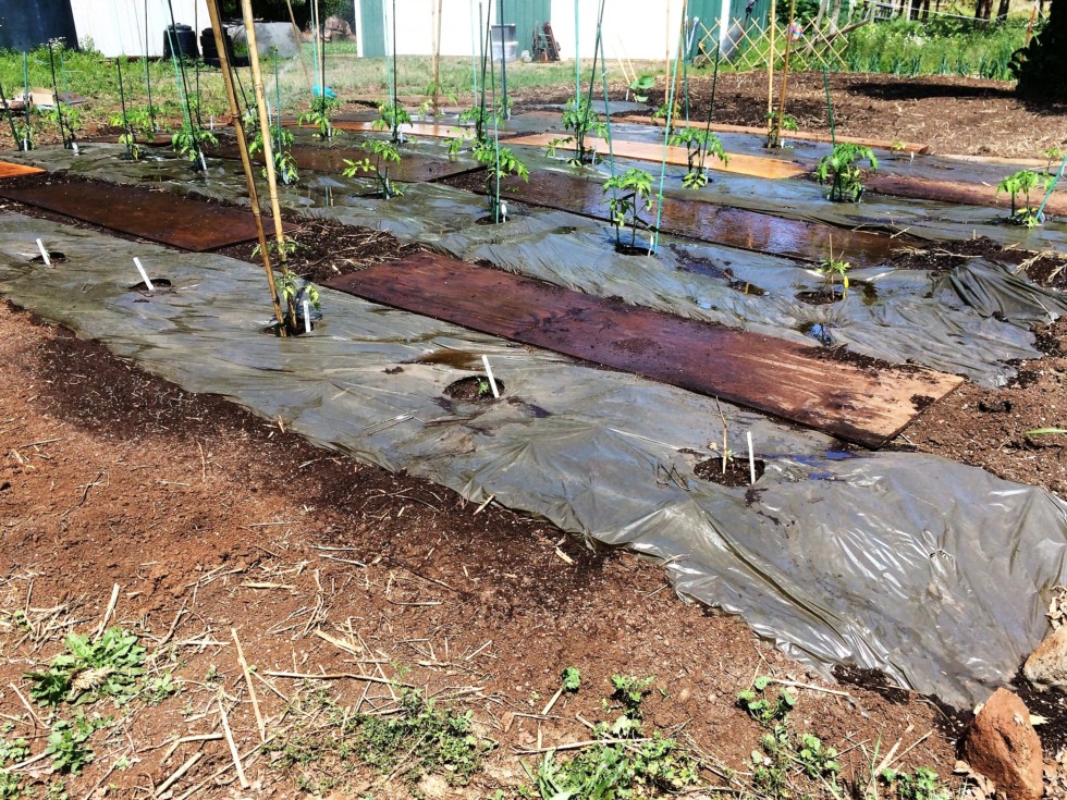 Thirty three competition tomatoes in the ground. Here in the first row are two 18 day old Delbrut's and 6.06 Schmit's. In the middle is a 3.72 Henderson (5.96 Treece Delicious) started by Mr. Henderson and given to me. What a great way to spend my B-Day in the 95F heat!