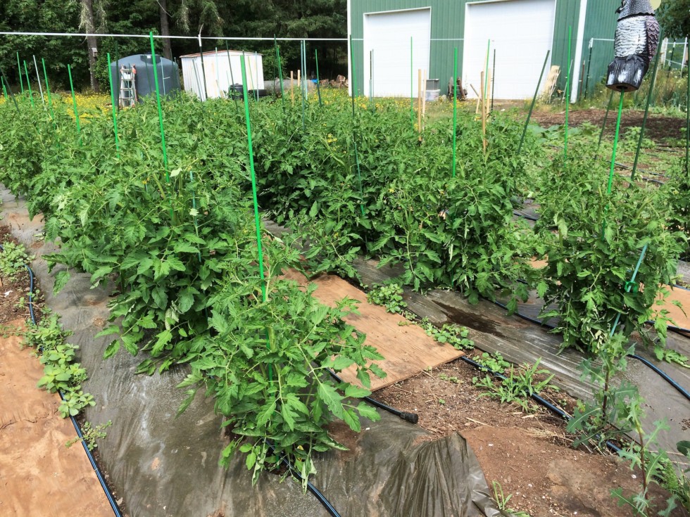 Came back to a garden all out of control ! Needs attention. I didn't trim my tomato plants this year. My philosophy is the leaves convert the suns energy into giant tomatoes! Cut them off and you have smaller tomatoes. That simple. Energy is never lost, it just changes places.