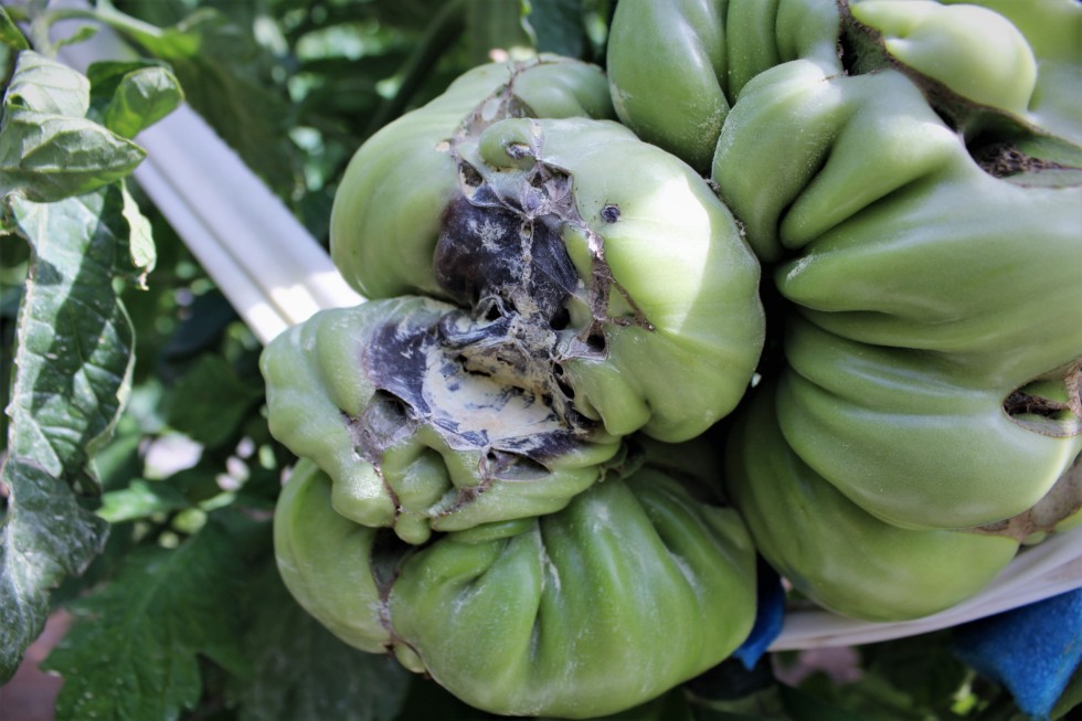 I have treated the blossom end rot with sulfur and is now hard as plastic and under control. I about threw the towel in.