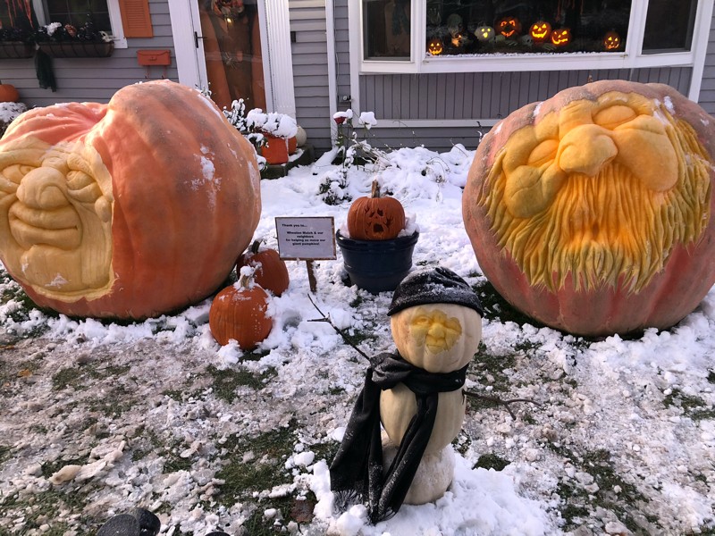 Poured hot water over the pumpkins to get all the snow and ice off last night.