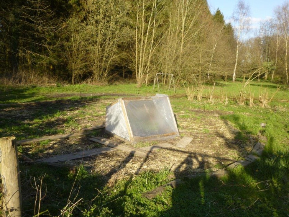 Here's my patch in the valley where I hope to do a couple marrows and a squash. The mini Greenhouse is just trying to warm the soil up. Hard frost the last several nights in a row.
