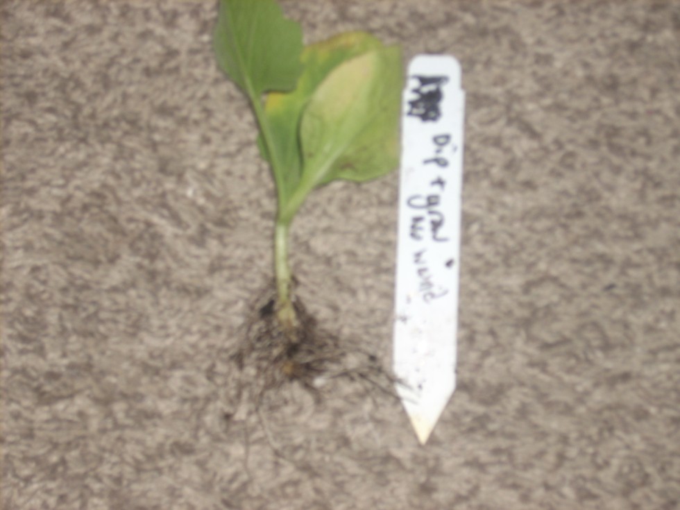 I did a little experiment with some 'Tetsukabuto' squash cuttings. In this picture the cutting was dipped in a rooting hormone called "Dip and Grow" (10X strength) The hypocotyl was not wounded before dipping. It rooted very well.