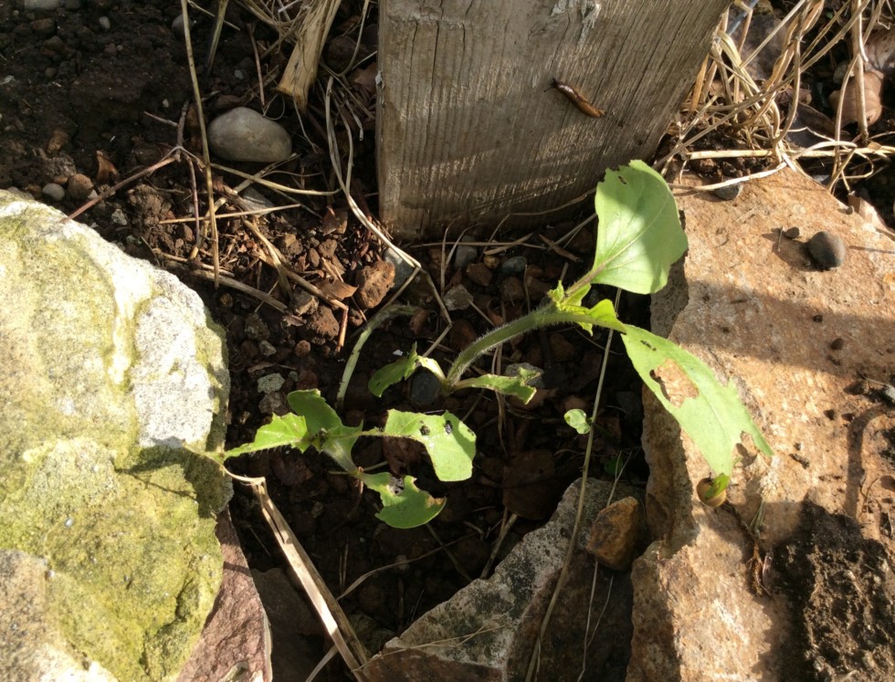 At this rate they won't even reach 26 inches, much less 26 feet. One will hopefully make it. I didn't notice the slug on the post when I took the pic.