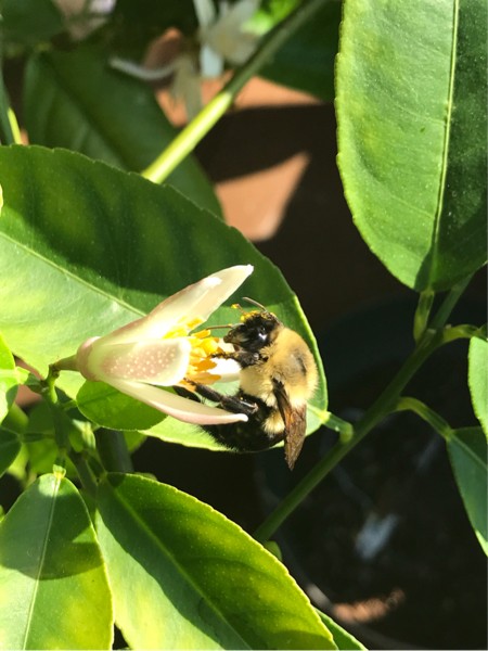 Val and I are babysitting a neighbors lemon tree. The bees are doing their business this morning.