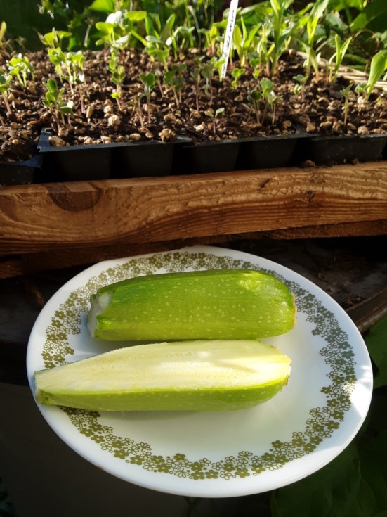 Spaz. Zucchini is getting very prolific. I think I have a keeper set SpazZ X self. It looks good for eating. The shape is a little more plump. A unique garden seed from the exotic seed exchange!