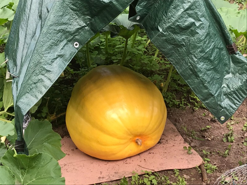 I don�t think I have put a pic of the HD contender in our patch this year. I was fortunate enough to get a 1297 Young from the grower. Thank you John ! I know he is getting low on those seeds so I had to squeeze it in it�s in the beginning of our patch and only in an area of about 200 sq ft. What a beauty !! It looks like it will be a bright orange pumpkin with a great shape.