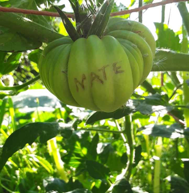 Tomato etching seems possible. Best done early, so it might heal.