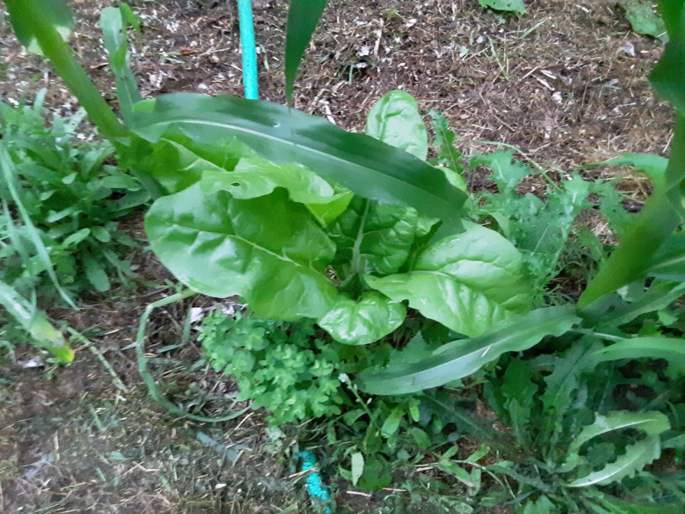 The swiss chard between the corn did well. Better than the kale, in fact. I think this worked as a companion because the chard is one of those plants that melts in the sun but it looks tender here at the time of year when little plants can get roasted.