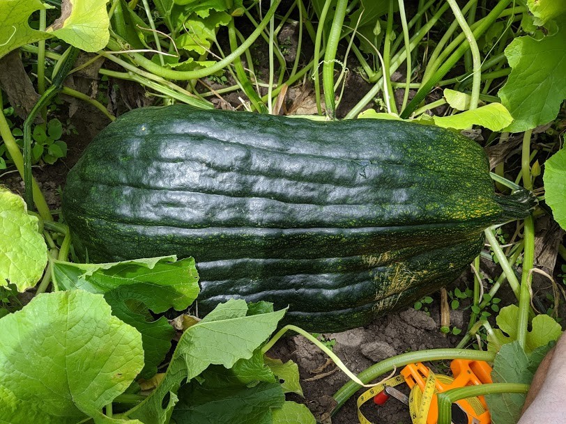 89 Harrington also 154 OTT for est 75 lbs. It's mother was a nice round barrel shape but this seed is throwing some weird shaped pumpkins. They start out normal looking blossom then grow long with sunken in sides.