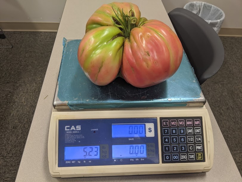 Weighed my biggest tomato today, grew on the 9.65 Marley. 5.23 lbs, 22 1/8" circumference. New PB and possible new Iowa state record. Biggest we can find in the records was Dave Miller's 4.37 in 2015. Does anyone have a current record list that can confirm?
