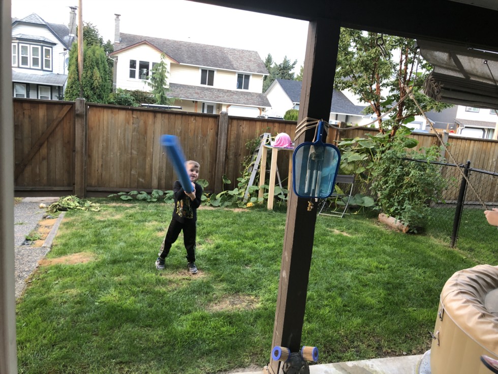My kid playing �tornado� in the yard. According to him it looks like a tornado came thru my patch and killed most of it. I told him if he wacked my pumpkin with it by accident whirling around fast like he was, Jenny was gonna fall out of the tree and roll after him! He looked at Jenny and then at me, then back to Jenni... Mommmm pumpkins can�t chase me! Cue YouTube vid, pumpkin chasing a kid on a hill, lmao.
