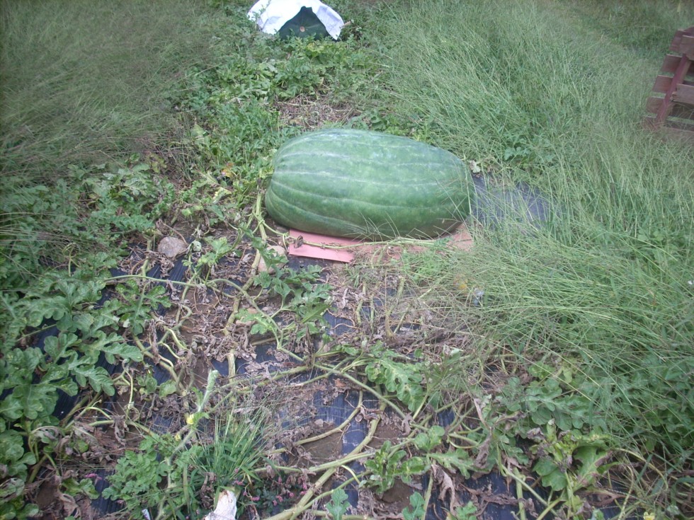 Getting ready for the Woodstock Fair, it's time to pick my "big lumpy" melon. Which turned out not to be so lumpy after all. From what I have seen melons tend to get better shapes as they grow. The opposite of pumpkins which can start out symmetrical and then turn into massive blobs. You can see that this plant is pretty well shot. The stump "blew up" in early August. Too bad this melon was on a growth track with some of the big melons grown. That being said there is a bright side....