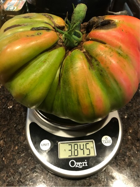 And her weight. Ehhh join the 3 plus pound tomato club for me. She has lots of company. It is a bump for the defending champs.
